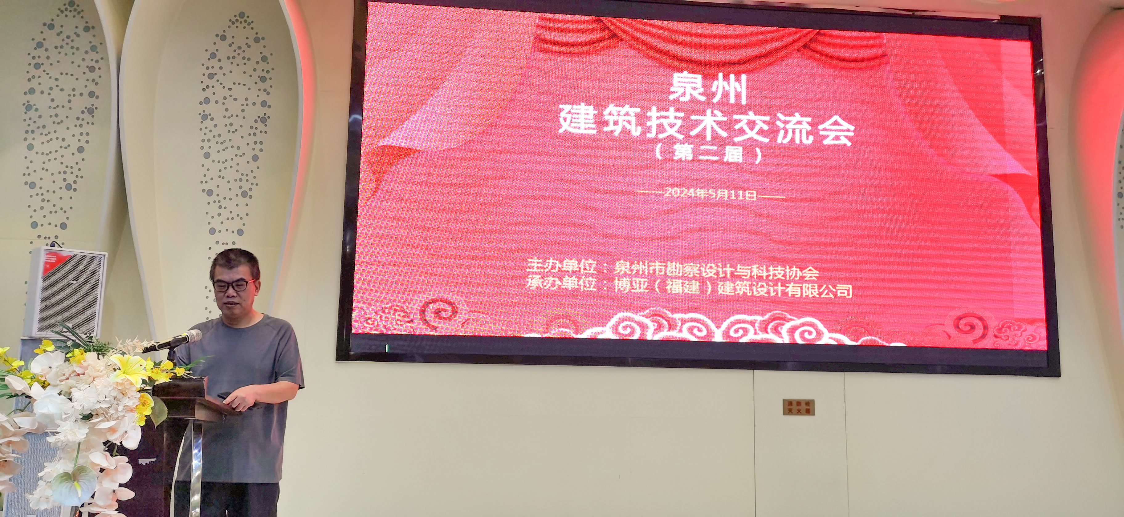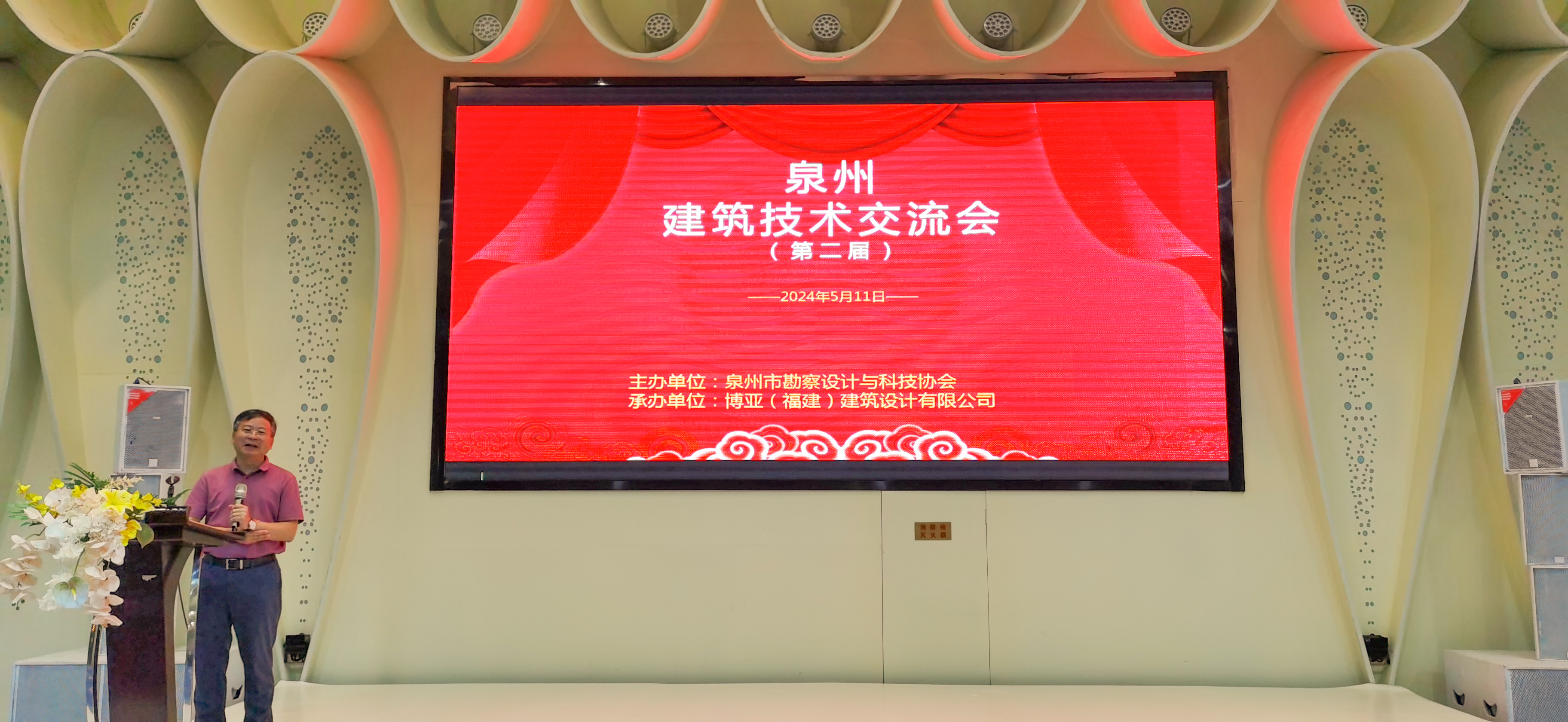 “泉州第二屆建筑技術交流會”于2024年5月11日在泉州鯉酒華宴召開,此次大會由泉州市勘察設計與科技協會主辦,博亞(福建)建筑設計有限公司承辦,吸引了眾多建筑行業專家和設計人員的積極參與。會議邀請了50余位專家蒞臨,就建筑行業領域雙隨機檢查和施工圖審查作了技術探討和精彩發言。